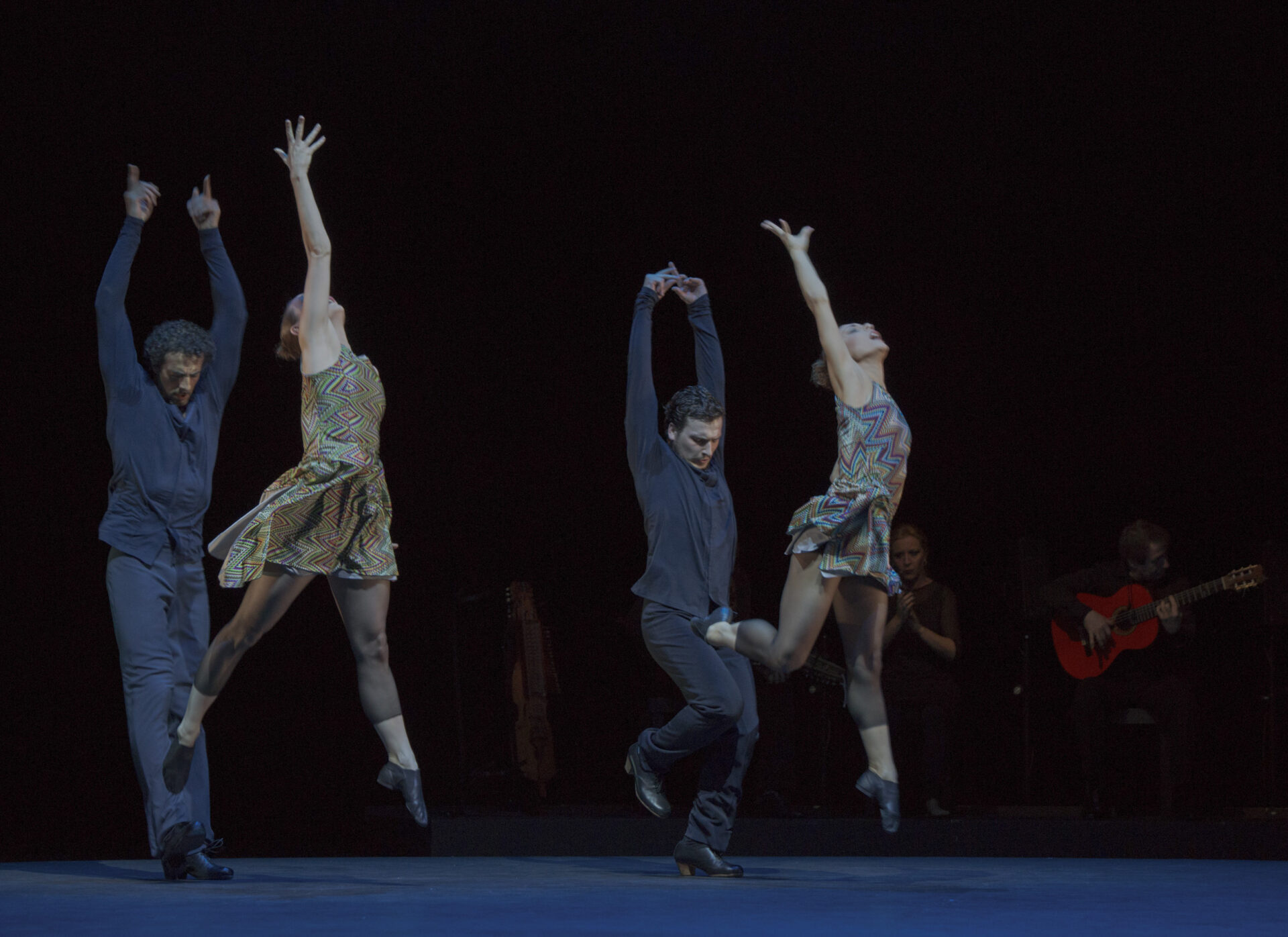 Das Capricho stellt hier die Lebendigkeit einer Idee, einer Laune als Ausdrucksform unbegrenzter Fantasie dar und steht für das Dunkle ebenso wie für das Helle. Ein Spiel mit den Formen und Farben des Flamenco, der immer wieder auch Fremdes und Neues assimiliert, ohne sich selber assimilieren zu lassen.“ Mit dieser Kreation bricht Flamencos en route einmal mehr zu neuen Ufern auf. Tänzer:innen und Musiker:innen von Flamencos en route treffen auf Tänzer:innen des Balletts von Martin Schläpfer. Zu poetischen Klangbildern von Gesang, Gitarre, Perkussion und Nickelharpa formen sich neuartige tänzerische Dialoge.
