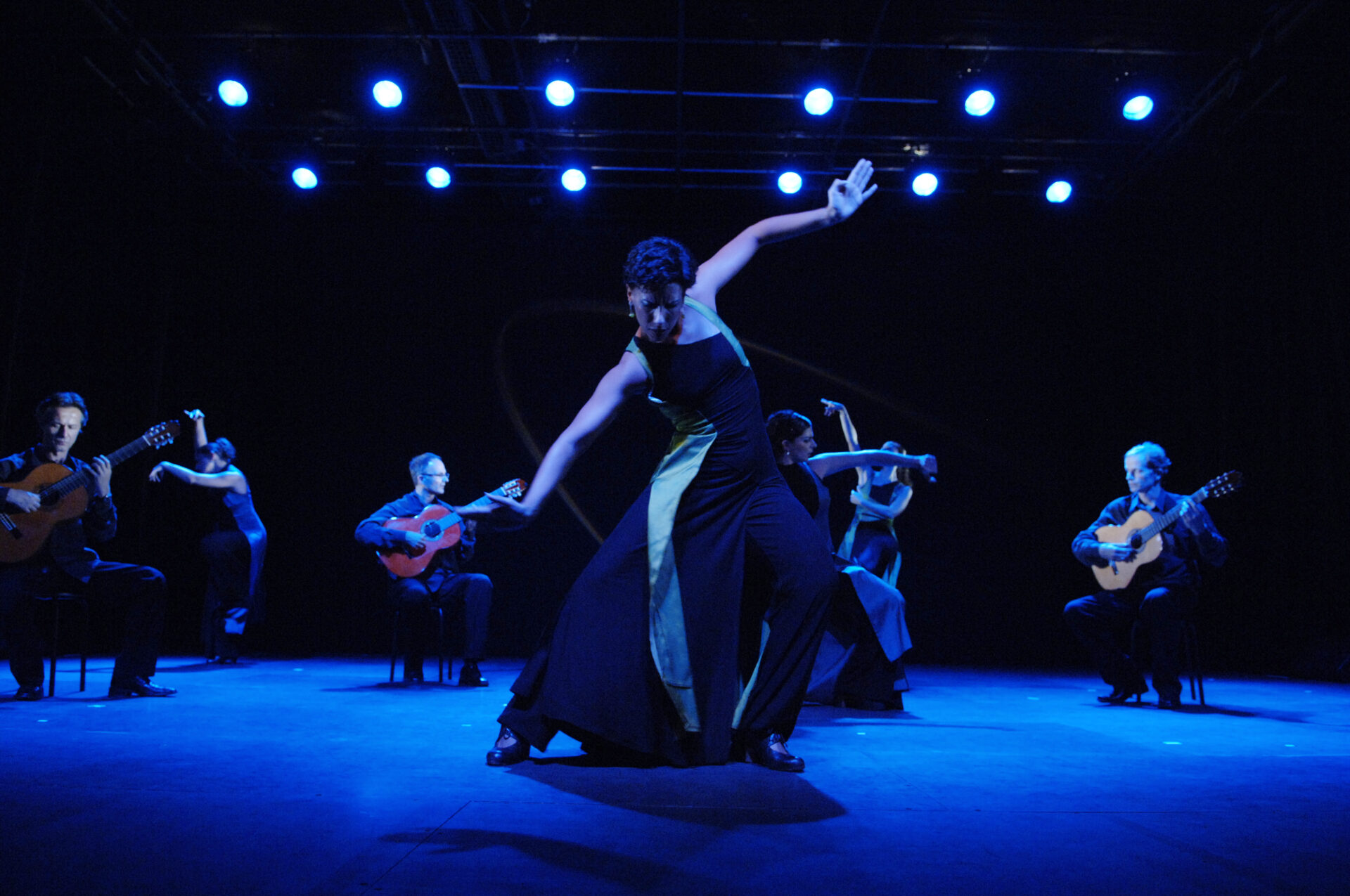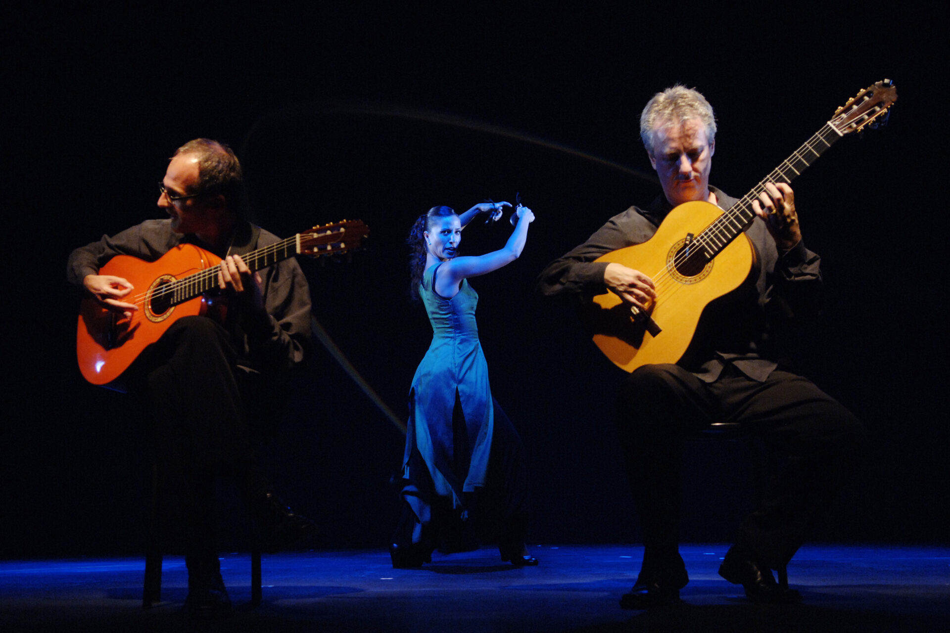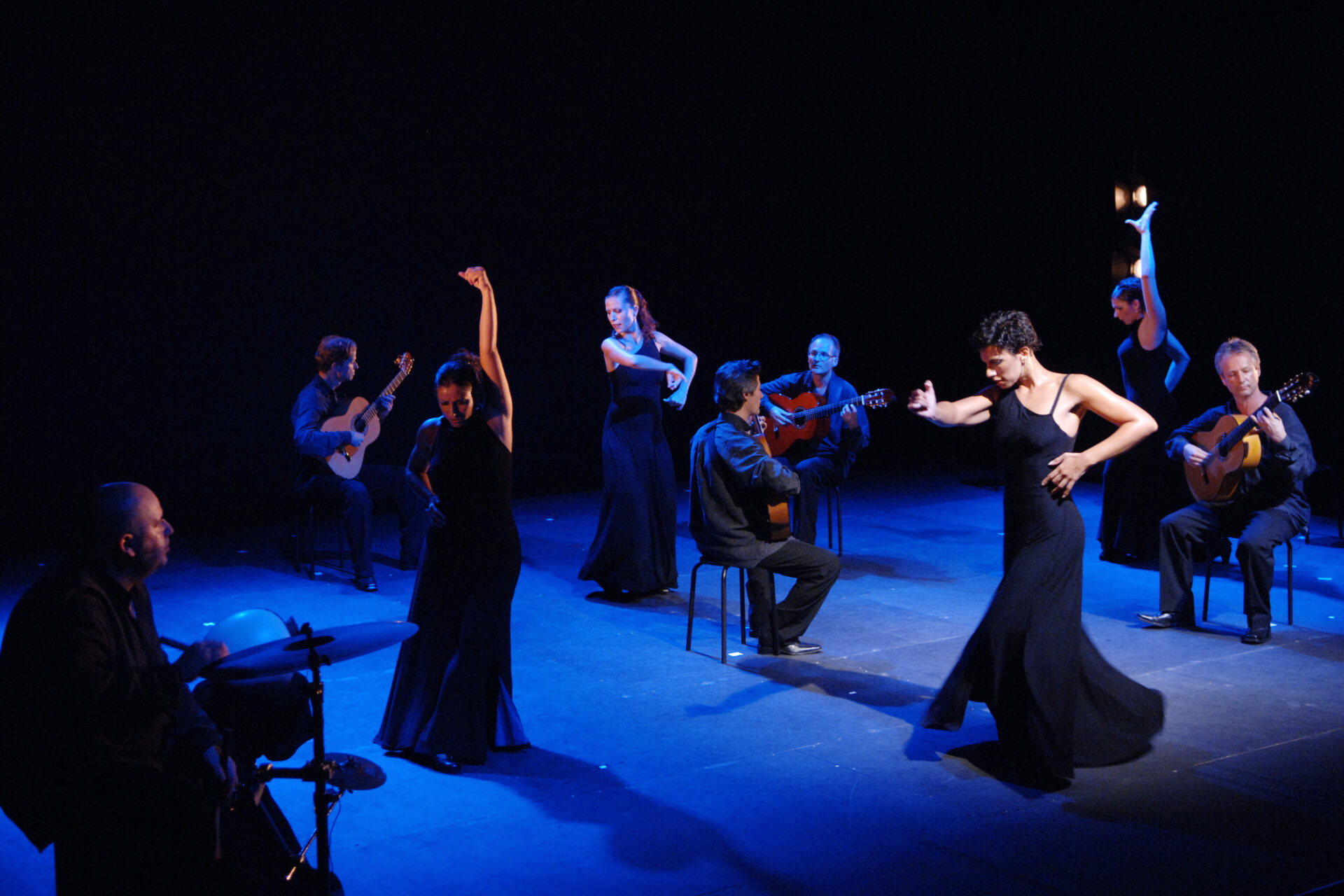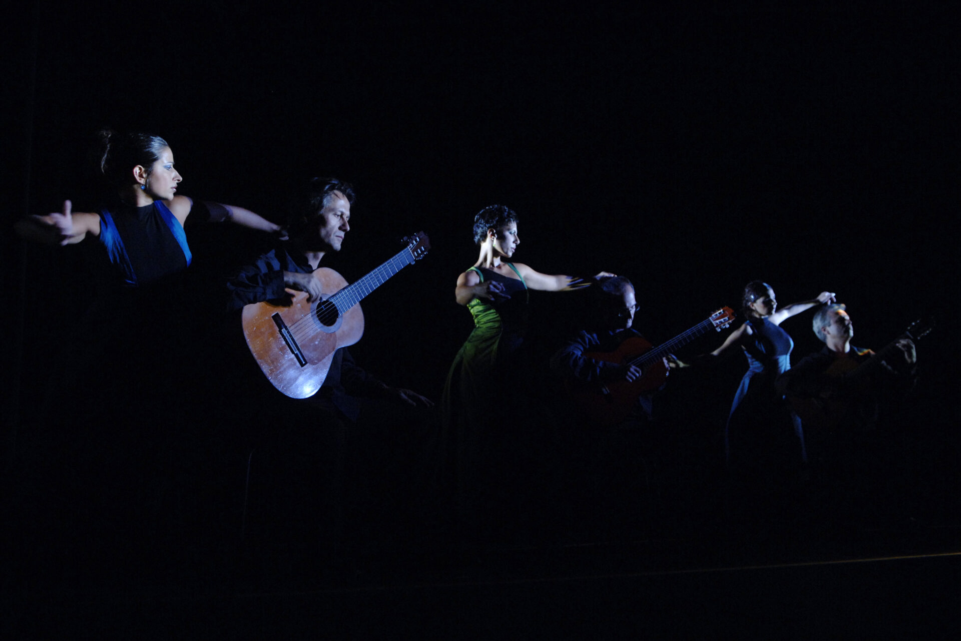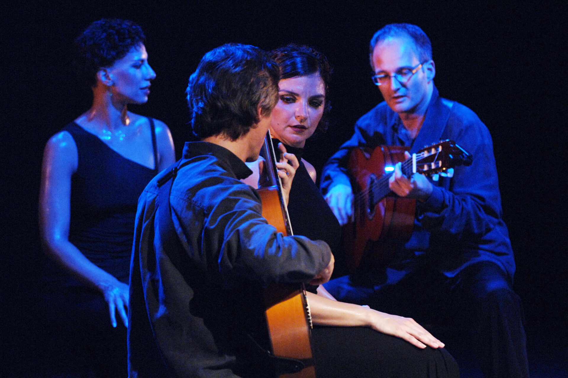 Eine Zusammenarbeit von Flamencos e route mit dem Eos Guitar Ouartet und der renommierten Flamencosängerin Carmen Linares. Das Zusammenwirken der eigenständigen Kräfte in Musik, Gesang und Tanz führt mit neuen Klängen und Bildern durch die sehnsuchtsvoll wie expressiv gezeichneten spanischen Liederlandschaften Lorcas und De Fallas.