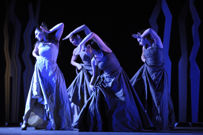 Stilisierte Pflanzenskulpturen und eine brillante Lichtregie, die den imaginären Garten in geheimnisvolle oder fahle Stimmungen taucht, sind neben den fliessenden Kostümen in Naturtönen die einzigen Zutaten zu diesem untypischen Flamenco-Abend ohne rote Rüschenröcke. Natürlich zeigen die verschiedenen Szenen auch die Virtuosität des klassischen Flamencos, mit rasanten Steigerungen und rasend schnellen Schritten oder Drehungen. Aber Brigitta Luisa Merki, die neben dem Tänzer Eloy Aguilar die meisten Tänze choreografiert hat, erzählt in ihren assoziativen Bildern viel lieber von der trockenen Erde, von Müttern mit Kindern im Arm, von weiblichen Miteinander und männlicher Konkurrenz, vom arabischen Einfluss auf das spanische Erbe und vom ewigen Thema des Flamenco, dem Tod. Sie entwickelt die Tradition weiter, fügt den eigentlich sehr formalen Tänzen theatralische und moderne Elemente hinzu, sucht den Bezug zu benachbarten Genres.