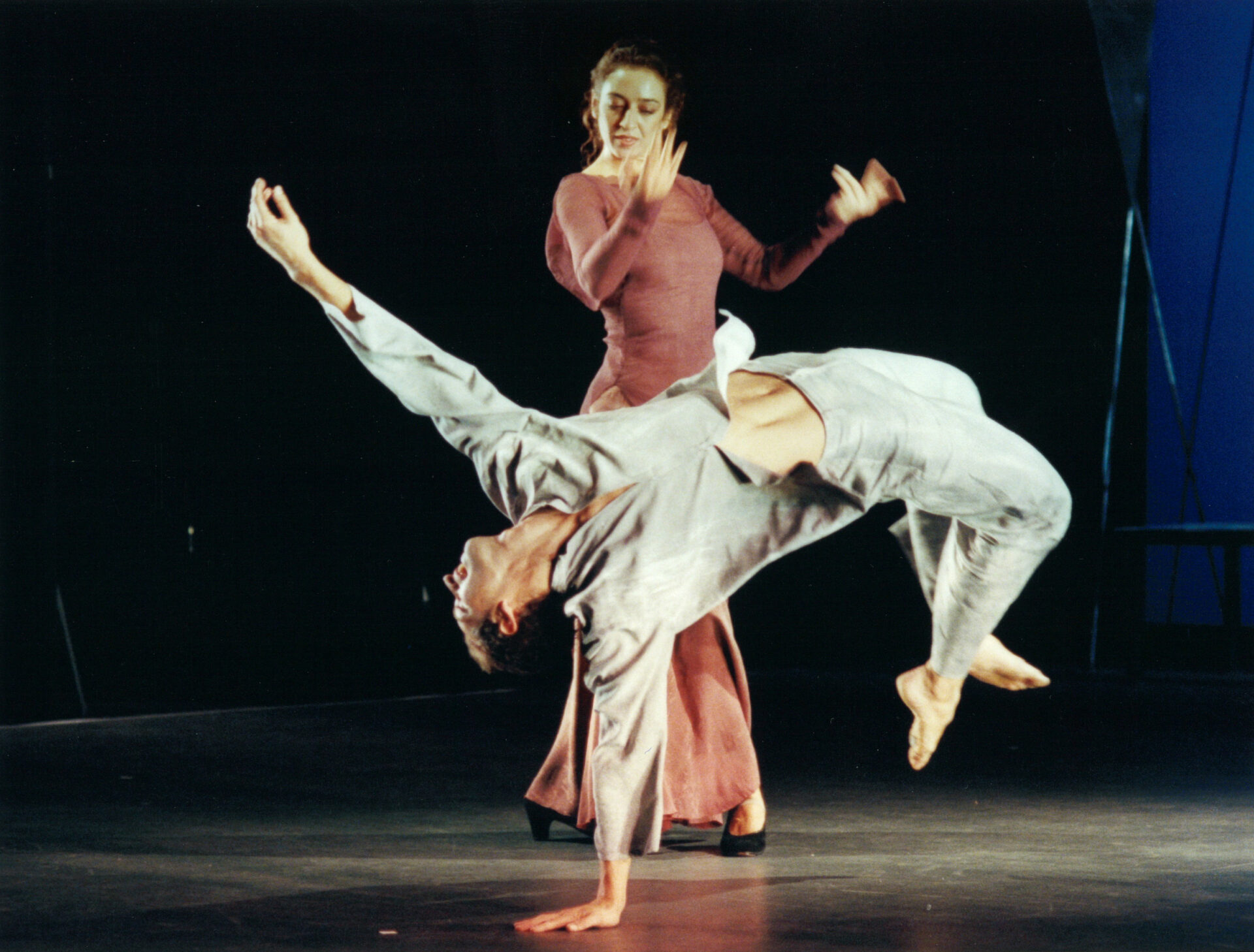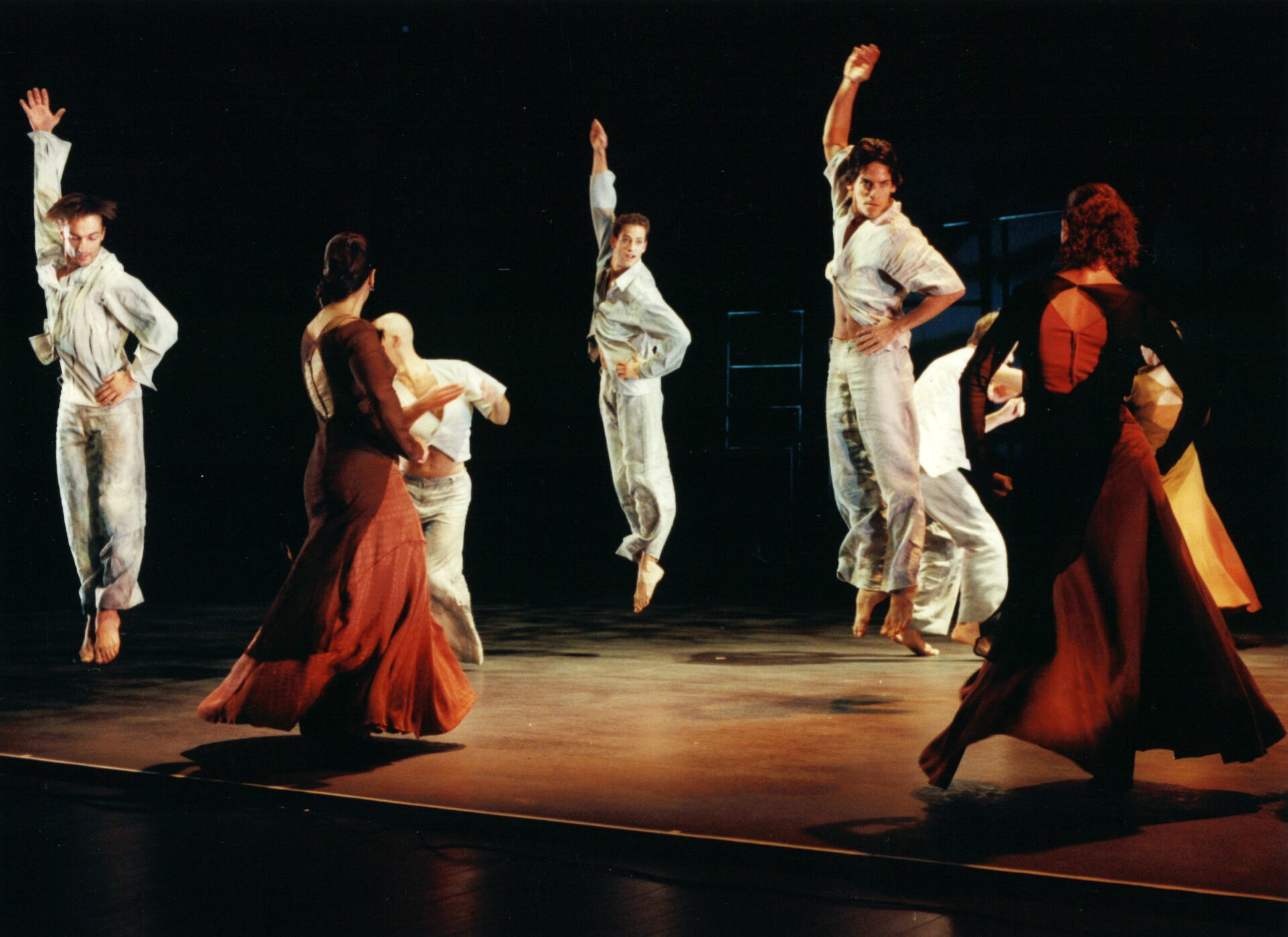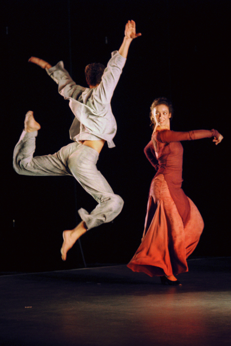 Die Männer verkörpern die Luft, ihre Leichtigkeit, das stürmische Chaos; den flüchtigen Moment. Angeregt durch die komplexen Rhythmen und in Bann gezogen von der ruhevollen Anziehungskraft der Erde, lassen sie sich auf einen grossen Liebestanz ein. Auch musikalisch. „Soleá and the Winds“, Antonio Robledos Komposition, basiert auf dem Hauptthema der Soleá, einem tragenden, profunden Flamencothema und ist gleichzeitig wie „ein von Bergwinden beranntes grimmiges Gelände Kastiliens“, wie Antonio Machado in einem seiner Gedichte schreibt.