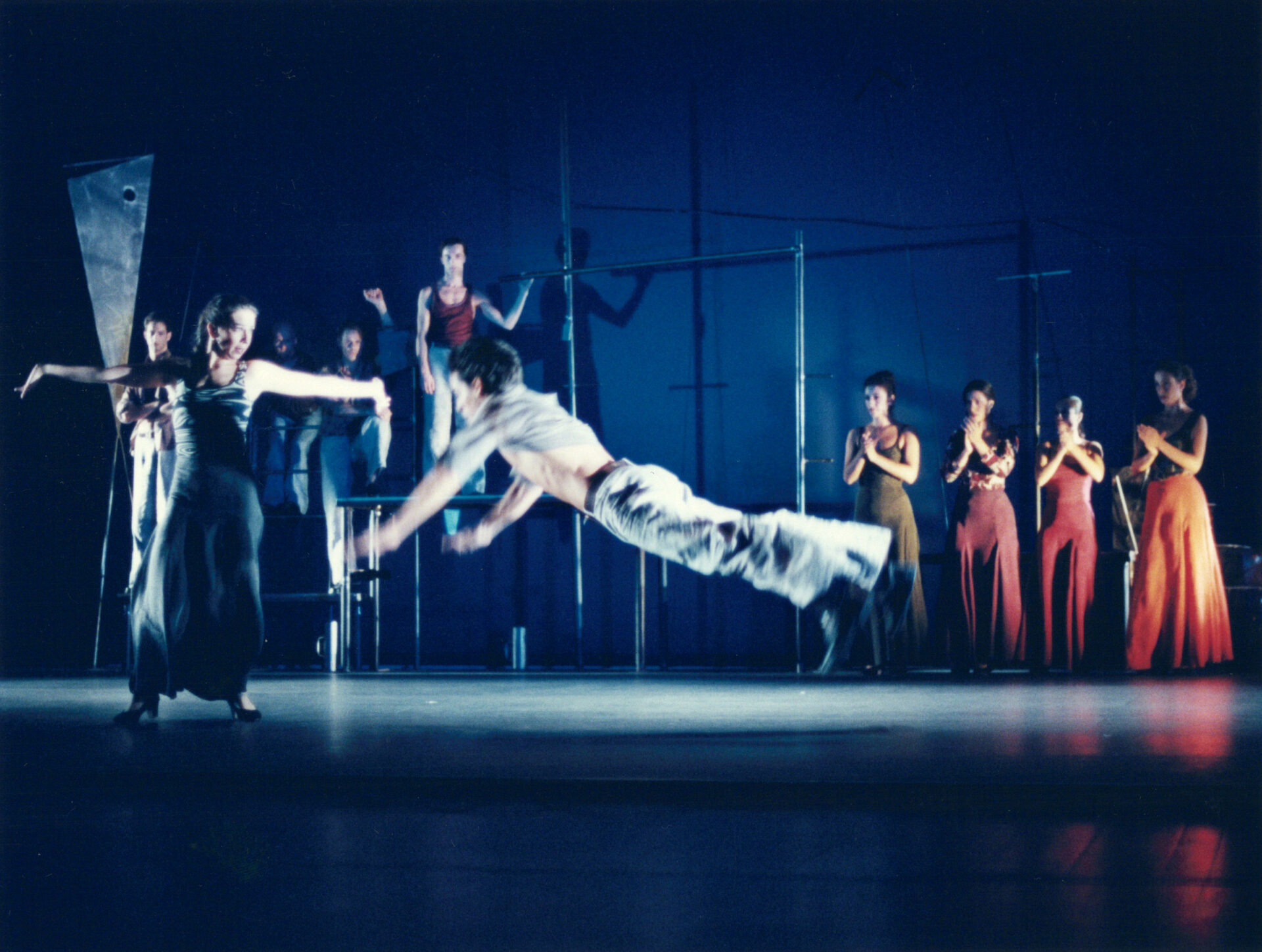 Die gemeinsam kreierte Choreografie von Brigitta Luisa Merki und Colin Connor ermöglicht die Begegnung zwischen fünf Rhythmus-besessenen Flamencotänzerinnen und fünf verspielten zeitgenössischen Tänzern. Die Choreografie schafft ein knisterndes Spannungsfeld der gegensätzlichen Prinzipien, die einander anziehen und abstossen. Sie erzählt in verschiedenen Liebesduetten die Geschichte einer Annäherung und des unterschiedlichen Steh- und Flugvermögens dieser Frauen und Männer.